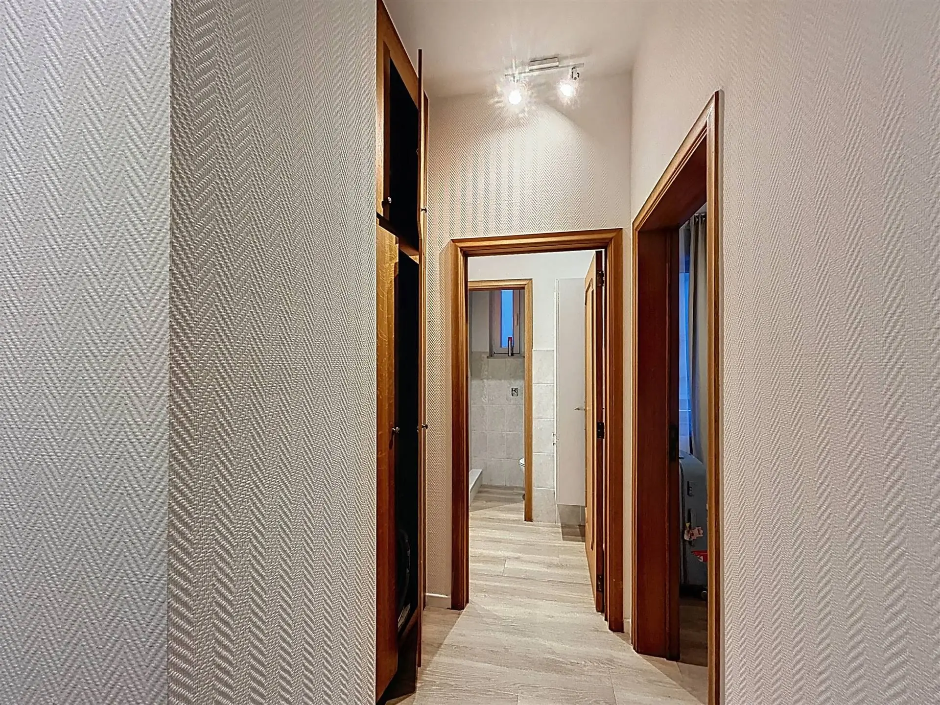hall de nuit et de trois chambres, dont une très spacieuse. Bien qu’il ne dispose pas d’un extérieur privatif, son emplacement central en fait un atout majeur. Chauffage collectif au gaz de ville, châssis PVC double vitrage (2024) et PEB C.