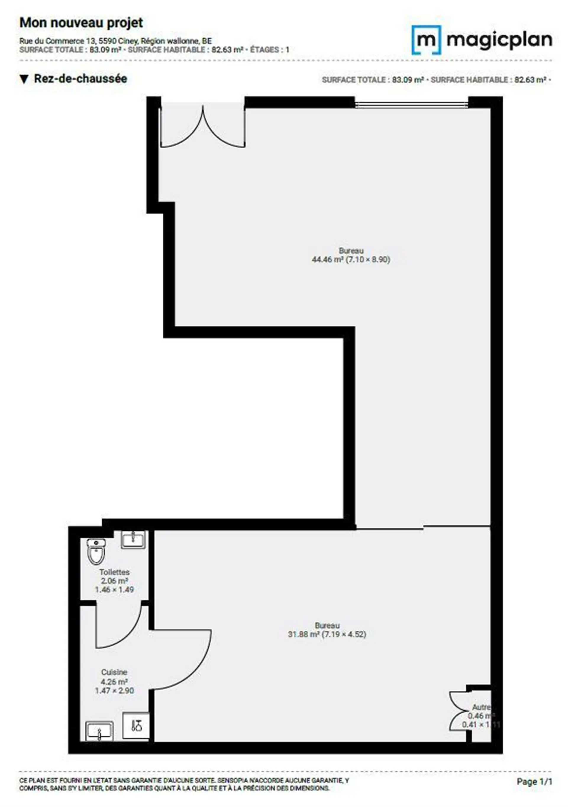 - Surface du bureau 83 m²
