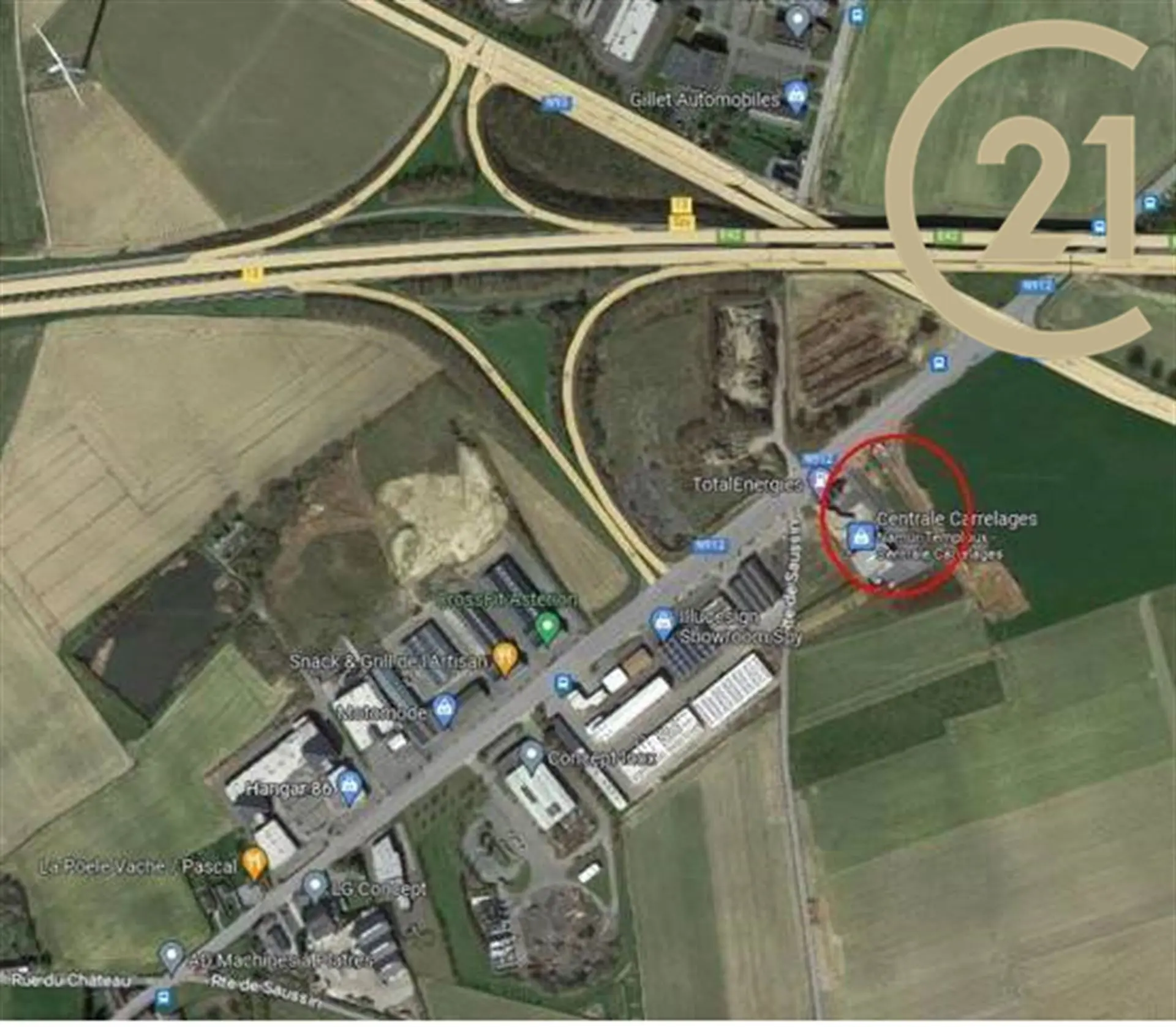 18 mètres de vitrines, belle visibilité sur un axe très fréquenté à proximité immédiate de la E42.