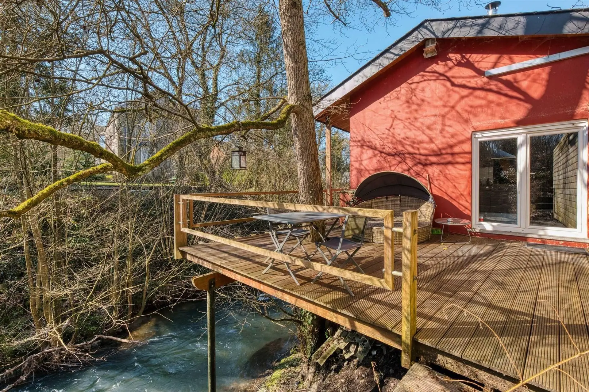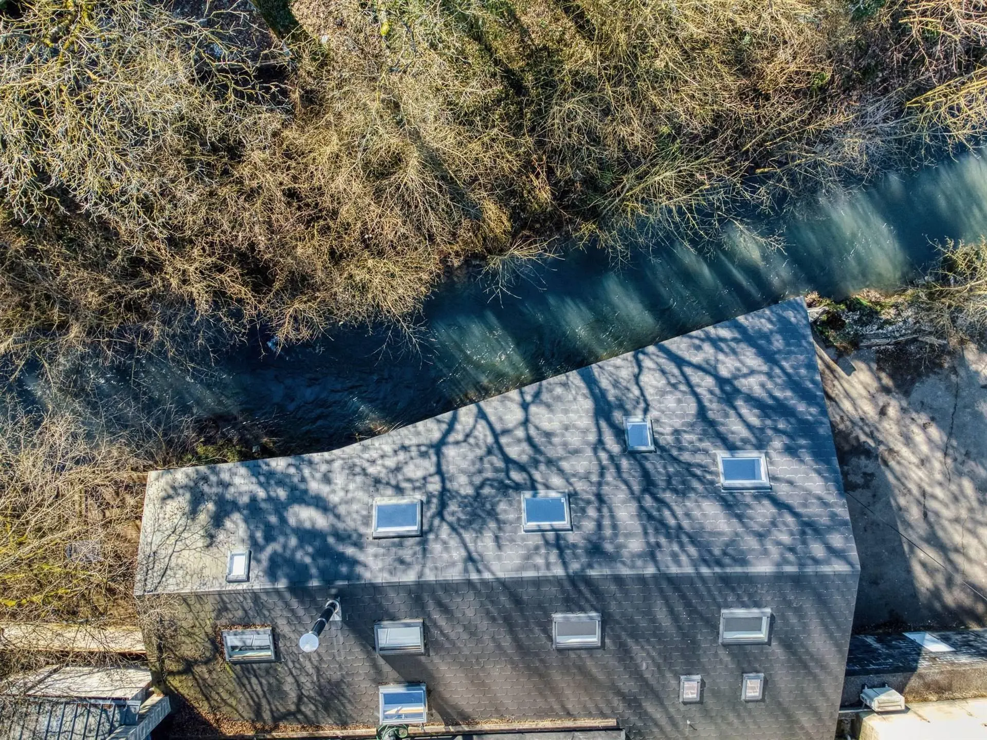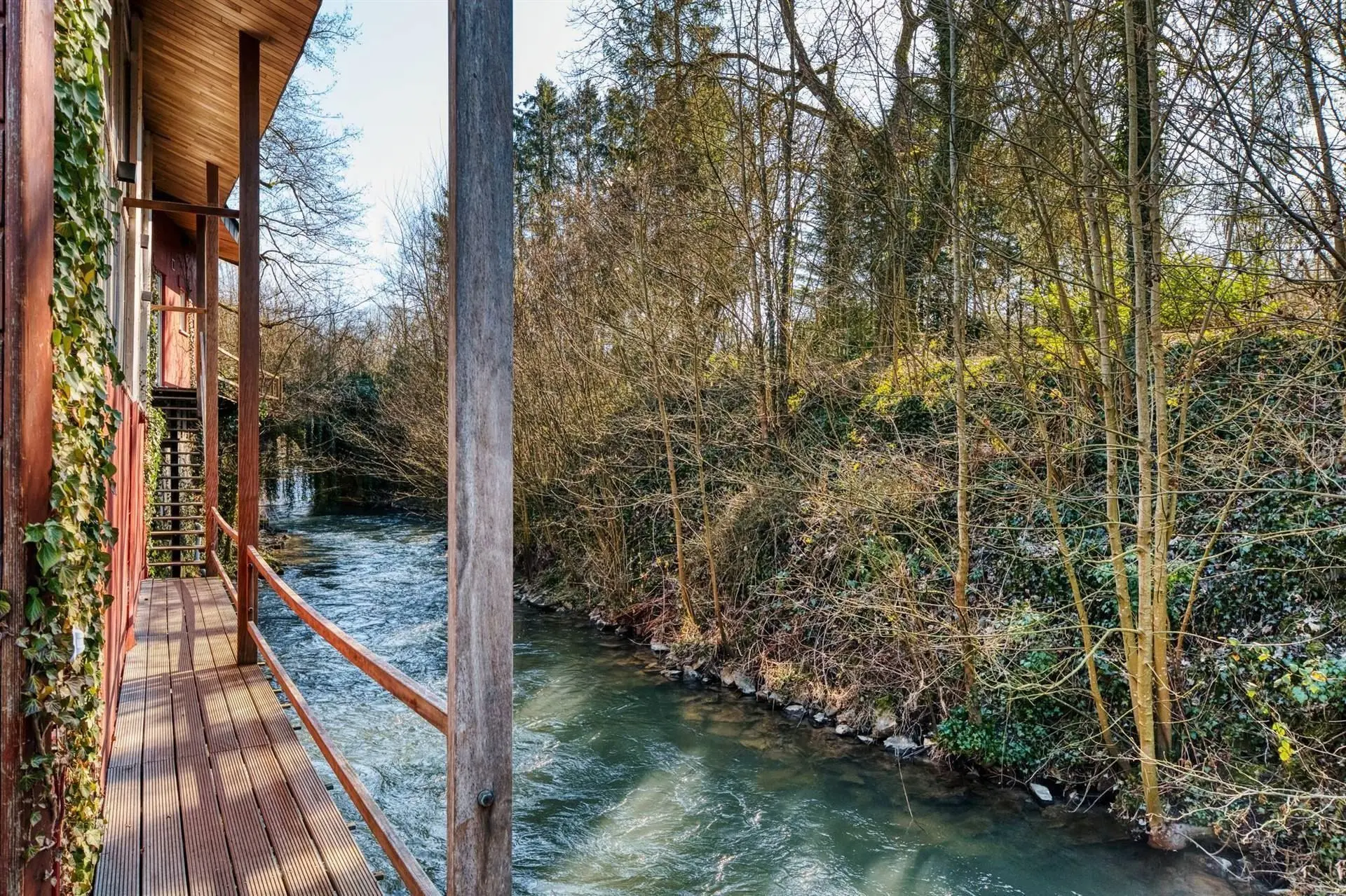 A l'étage, un vaste plateau de 167m² d'habitation comprenant salon avec jacuzzi, 2 séjours avec cuisines équipées, 3 chambres dont 1 en mezzanine (possibilité d'une supplémentaire), 2 salles-de-douches avec wc, terrasse surplombant sur le Bocq et parking.