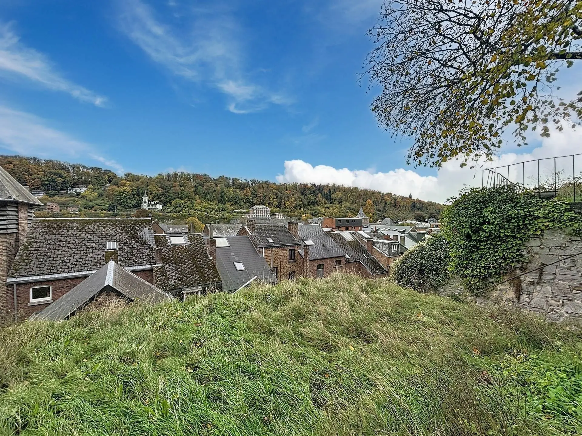 A l'extérieur, une cour pavée, avec accès direct au jardin et offrant une vue imprenables sur les toits et les environs de Dinant, complète le bien.