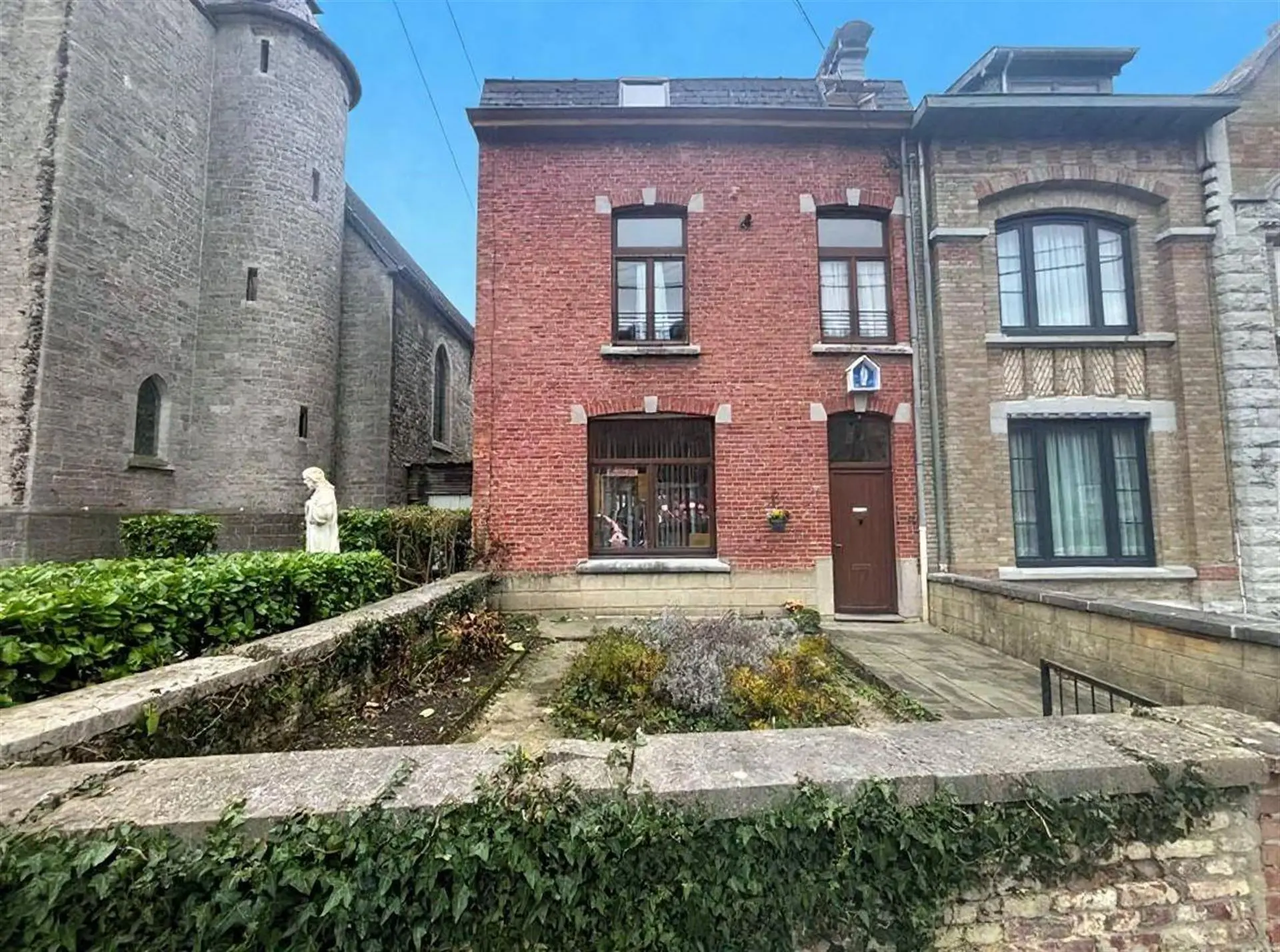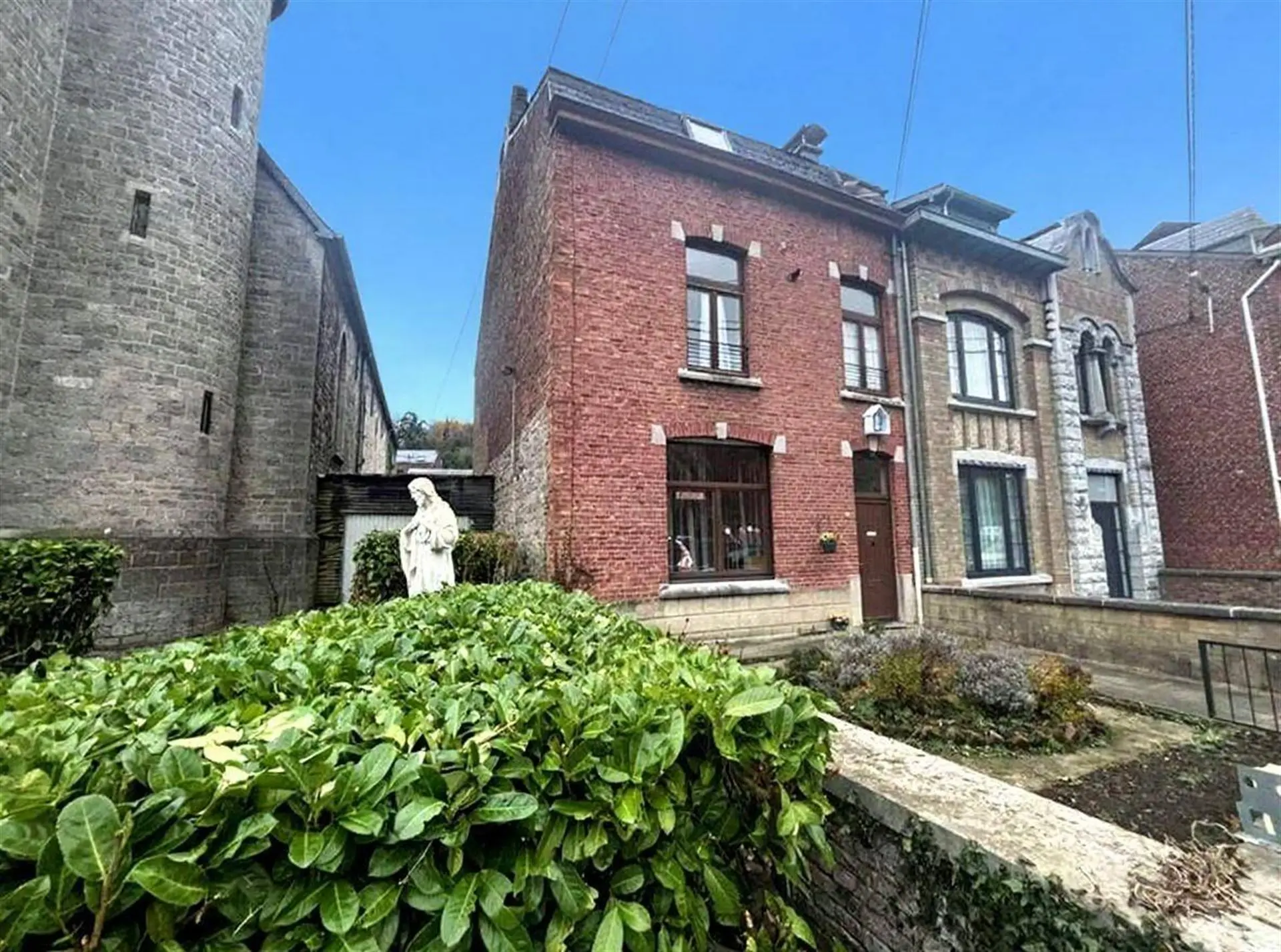 La propriété affiche une architecture de briques caractéristique de la région, avec une façade distinctive reflétant le patrimoine Dinantais. L'accès principal offre une première impression remarquable, donnant accès à des espaces intérieurs spacieux.