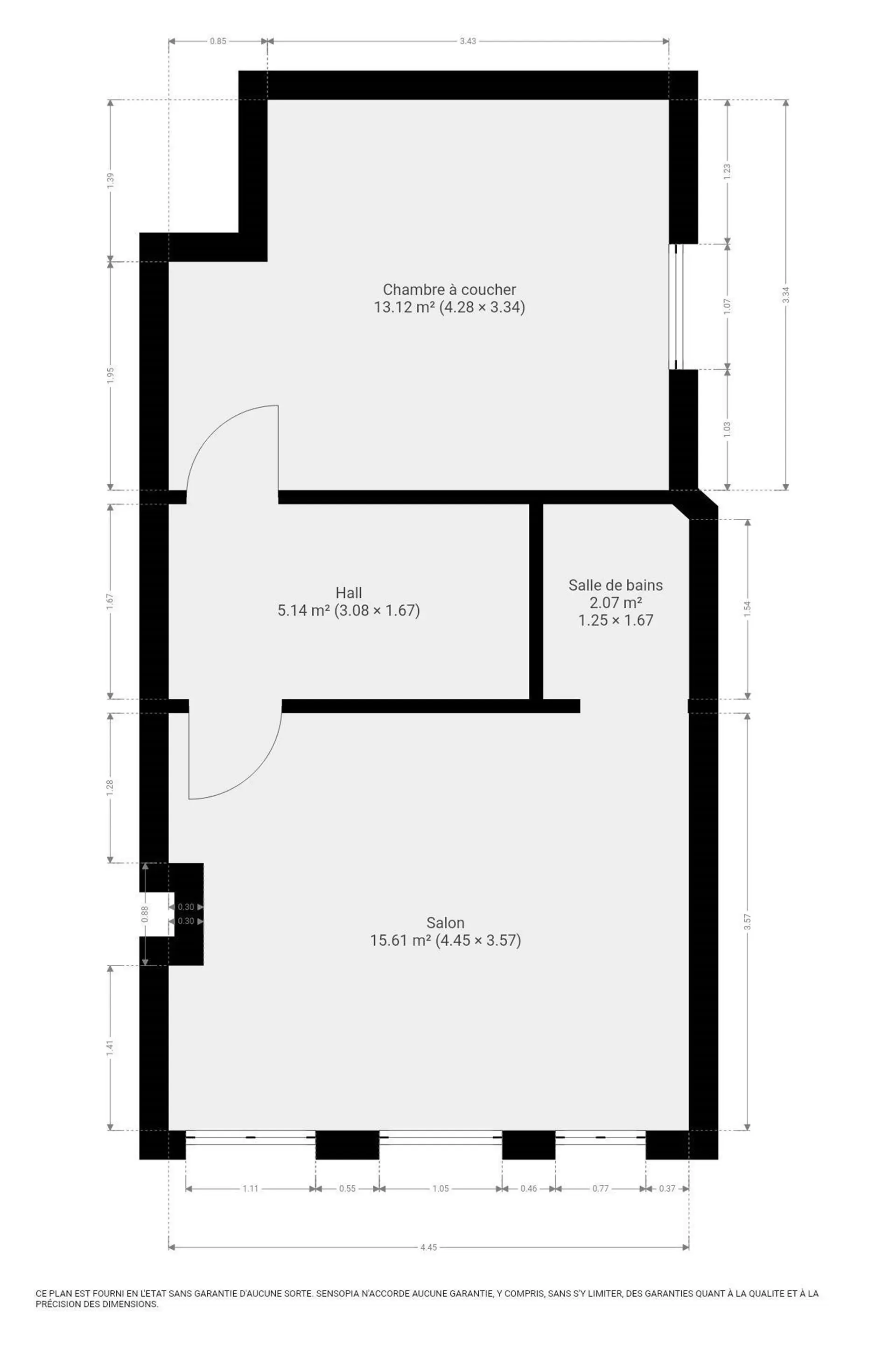 Le bien se compose de trois unités, chacune comprenant : une chambre, un espace cuisine/séjour, une salle de douche séparée.