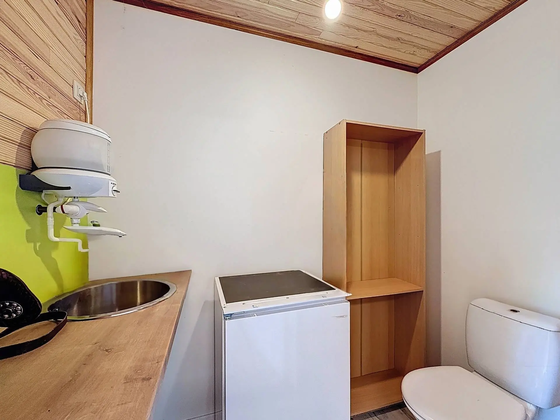 Entièrement rénové il se compose d'une grande salle et d'une arrière cuisine avec toilette.