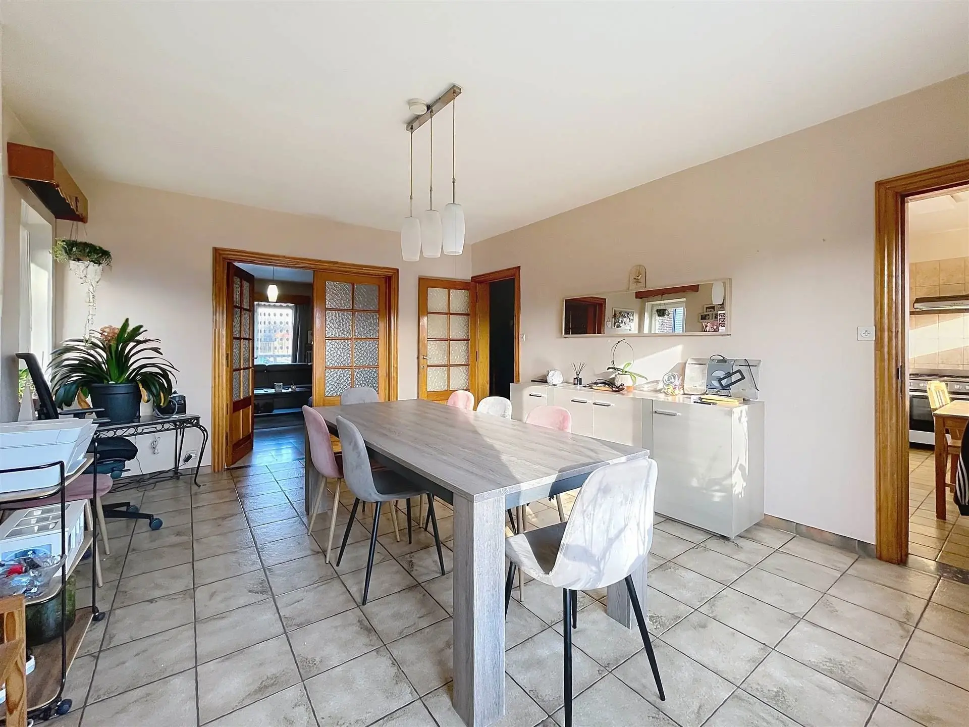 Le rez-de-chaussée dispose également d’une chambre et d’une salle de douche, offrant un réel confort de plain-pied. À l’étage, un hall de nuit dessert deux chambres ainsi que deux greniers, parfaits pour du rangement ou un aménagement complémentaire selon vos besoins. La maison bénéficie de caves et d’un garage sous toute la superficie, offrant de vastes espaces de stockage. À l’extérieur, une agréable terrasse s’ouvre sur un beau jardin exposé sud-est, idéal pour profiter pleinement de la lumière naturelle tout au long de la journée. Cette maison allie volumes, potentiel et situation privilégiée au centre de Ciney.