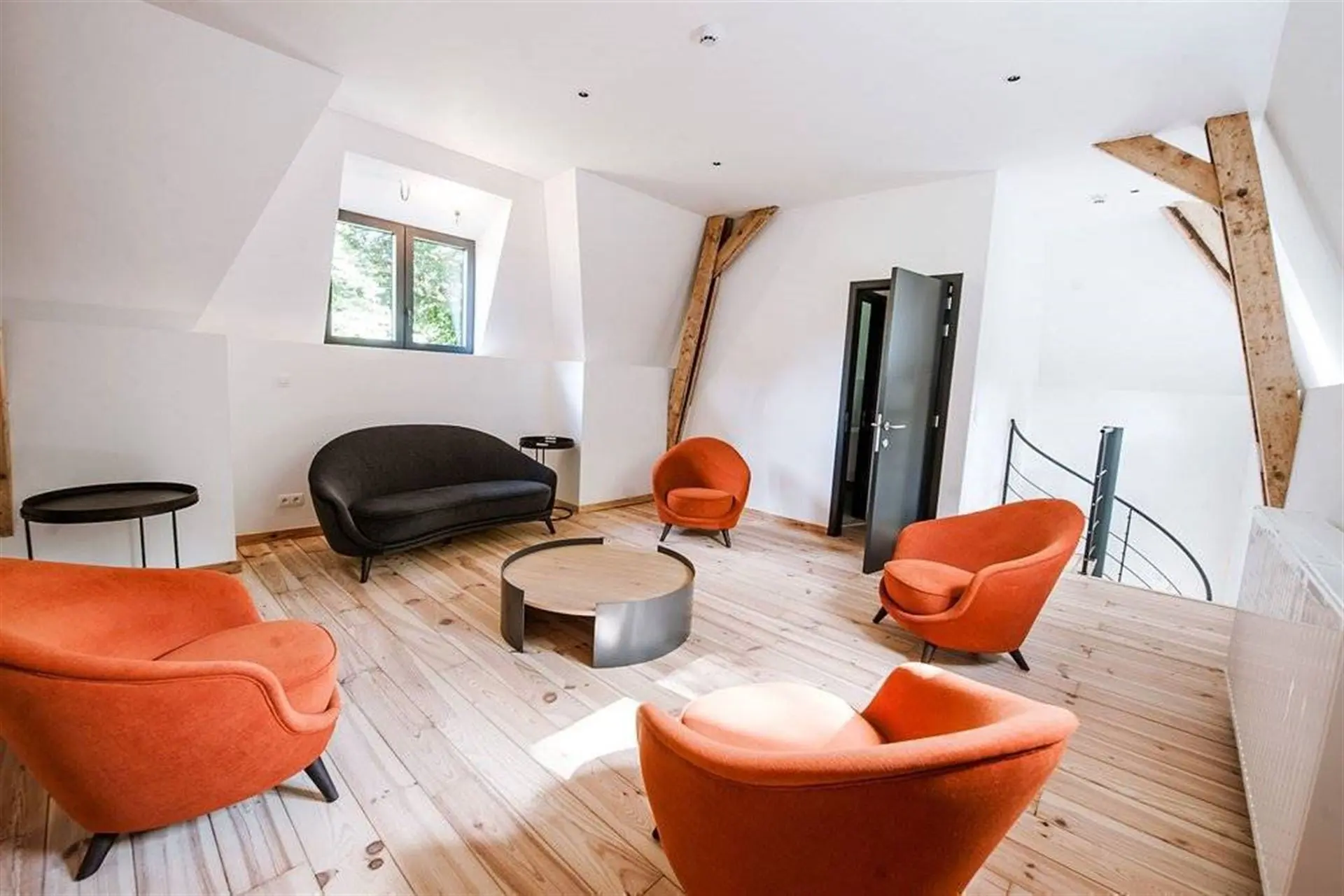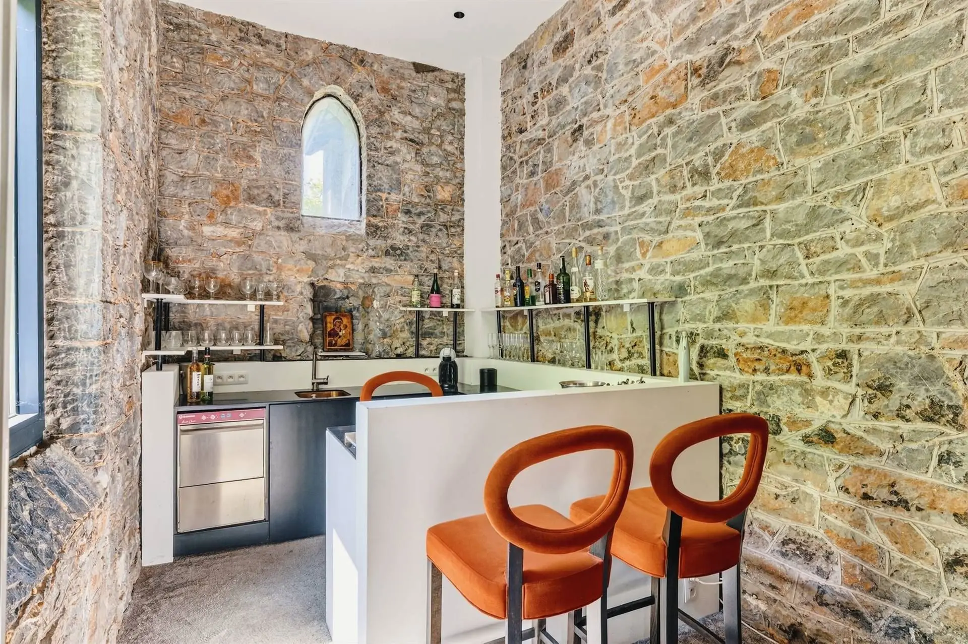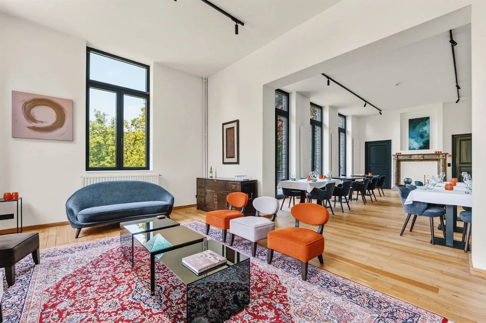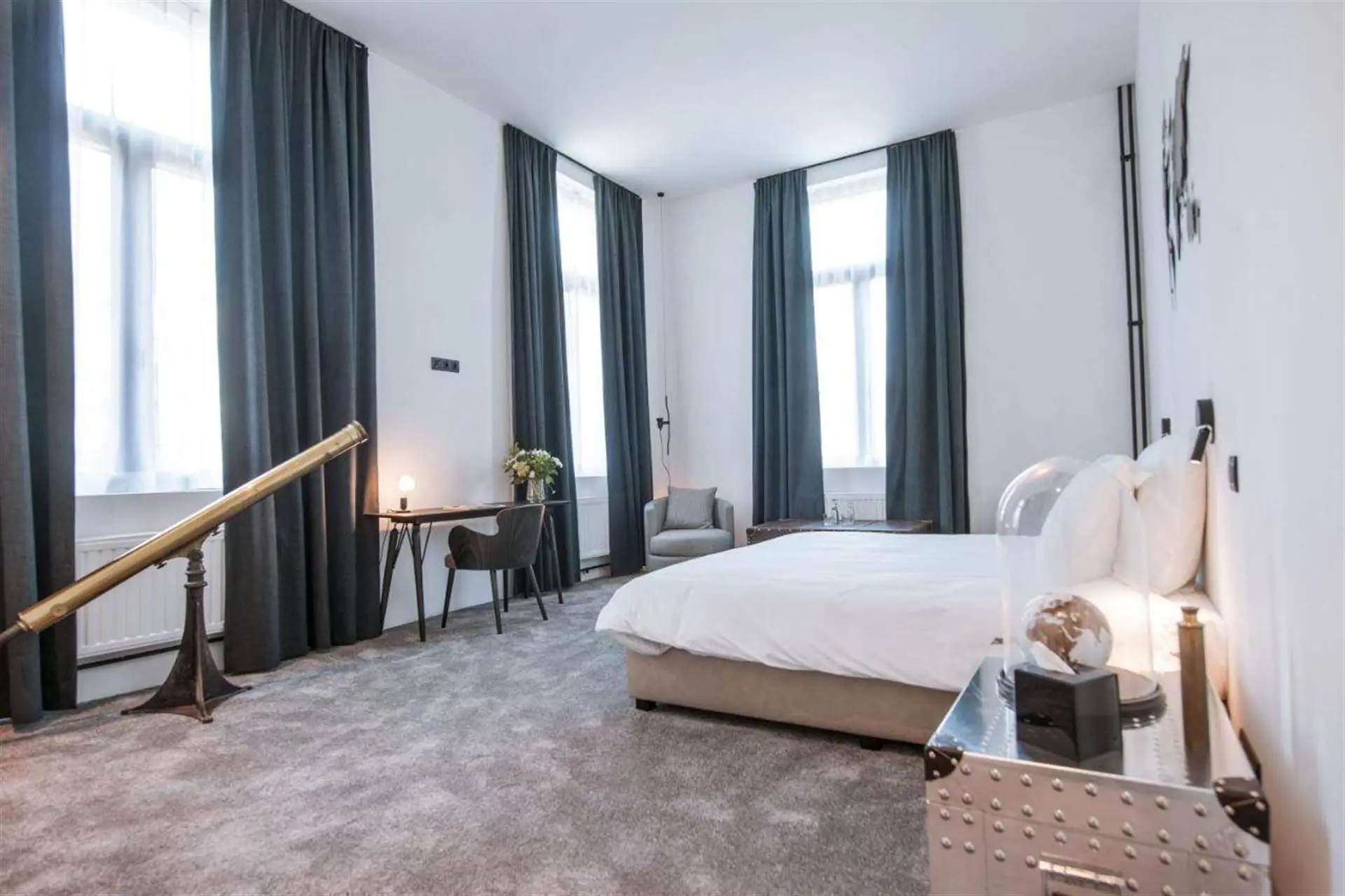 À l’intérieur, la pierre bleue, symbole de raffinement, dialogue harmonieusement avec les fauteuils Vegas et les chaises bar Monterey de la marque belge Marie’s Corner, créant une ambiance à la fois chic et chaleureuse. Les douze chambres, au design résolument trendy, sont dotées de salles de bain de luxe et toutes orientées vers la Meuse, offrant une vue époustouflante qui vous transporte loin de toute agitation.