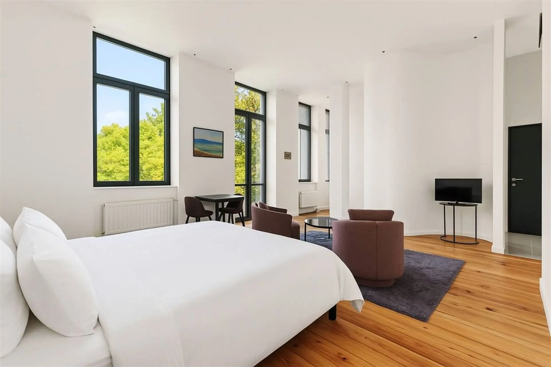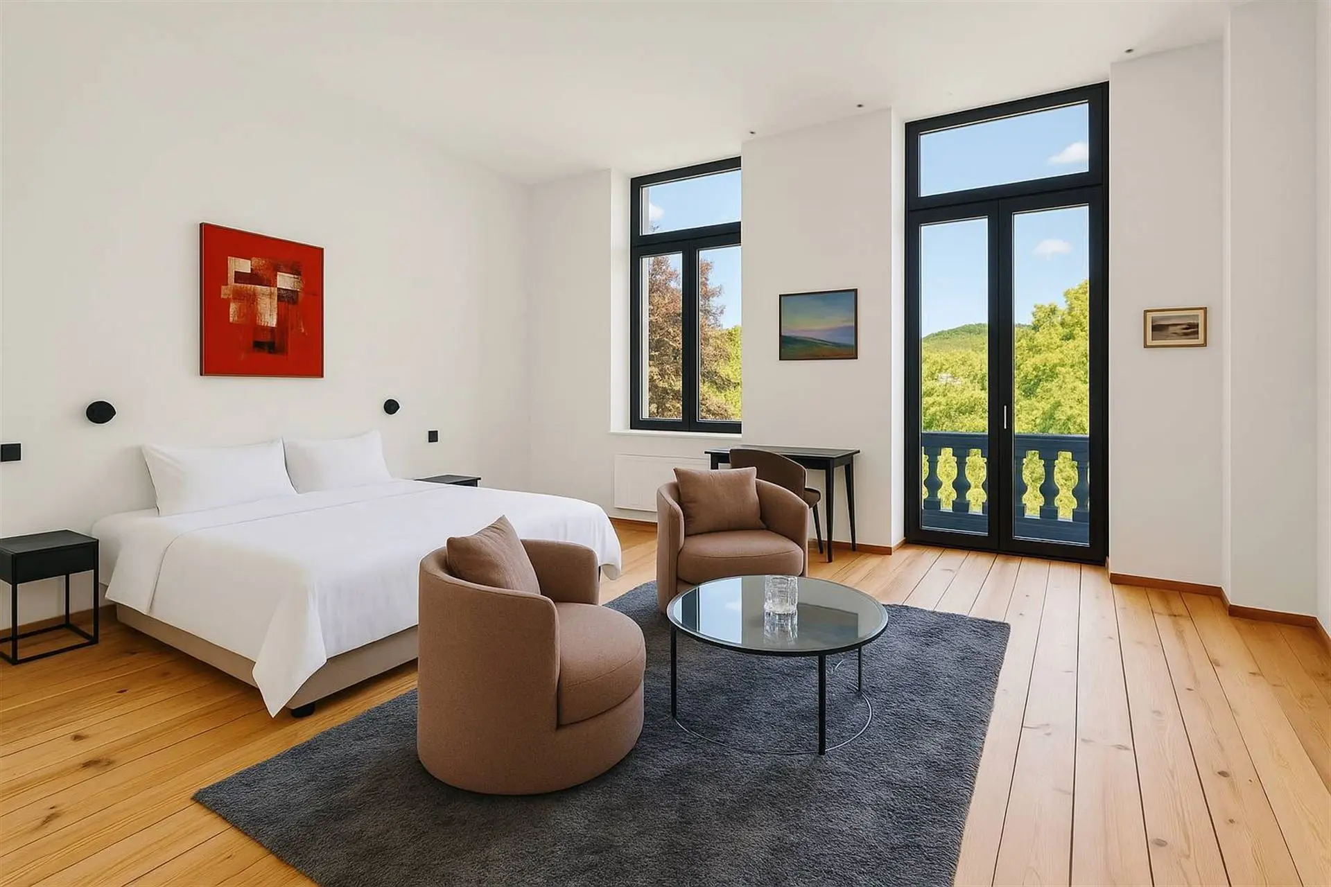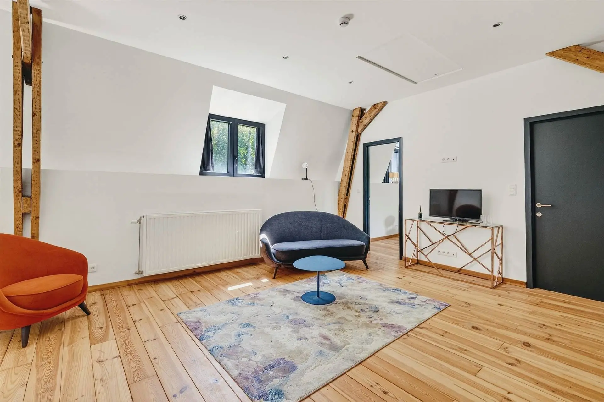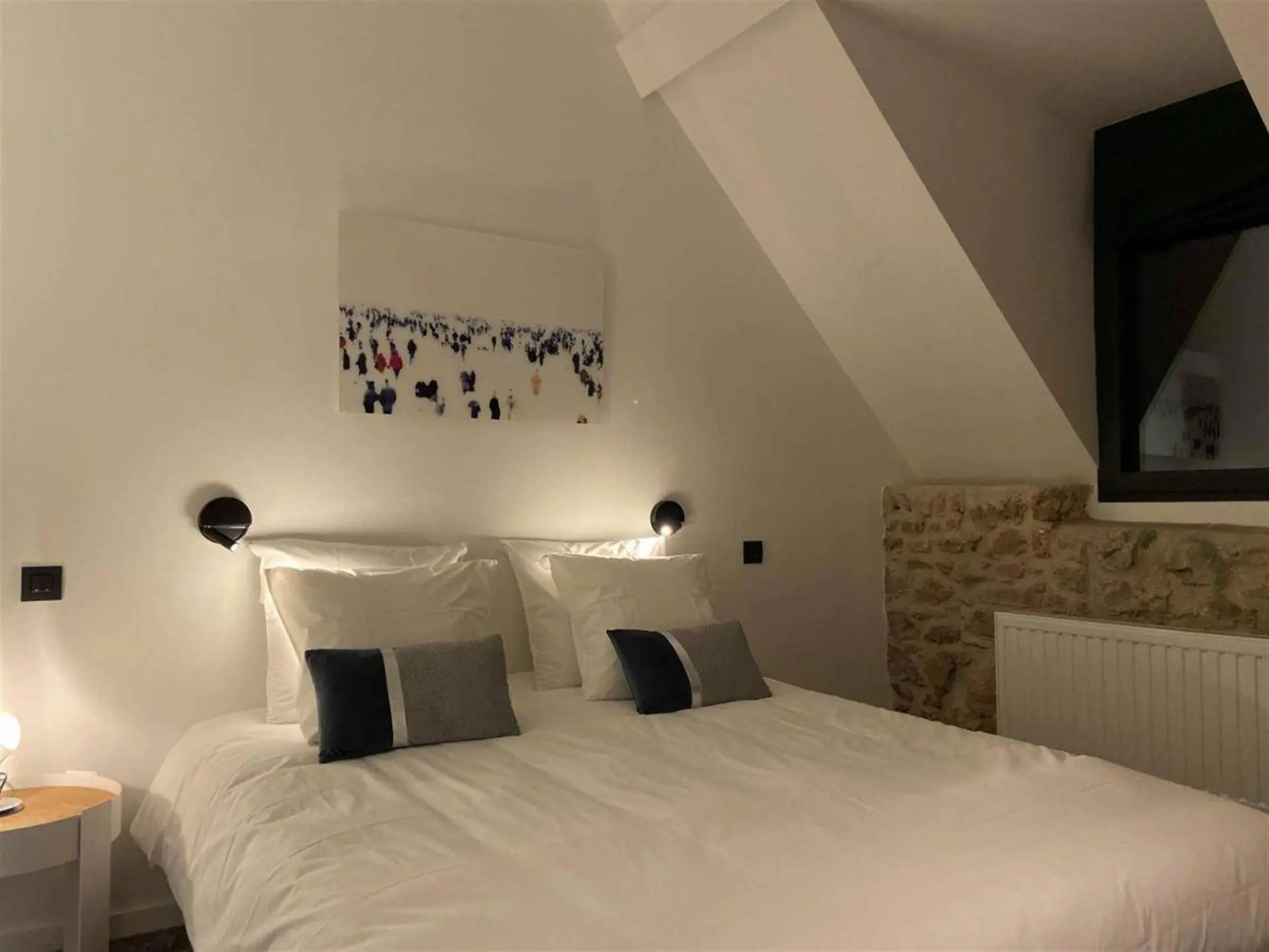 À l’intérieur, la pierre bleue, symbole de raffinement, dialogue harmonieusement avec les fauteuils Vegas et les chaises bar Monterey de la marque belge Marie’s Corner, créant une ambiance à la fois chic et chaleureuse. Les douze chambres, au design résolument trendy, sont dotées de salles de bain de luxe et toutes orientées vers la Meuse, offrant une vue époustouflante qui vous transporte loin de toute agitation.