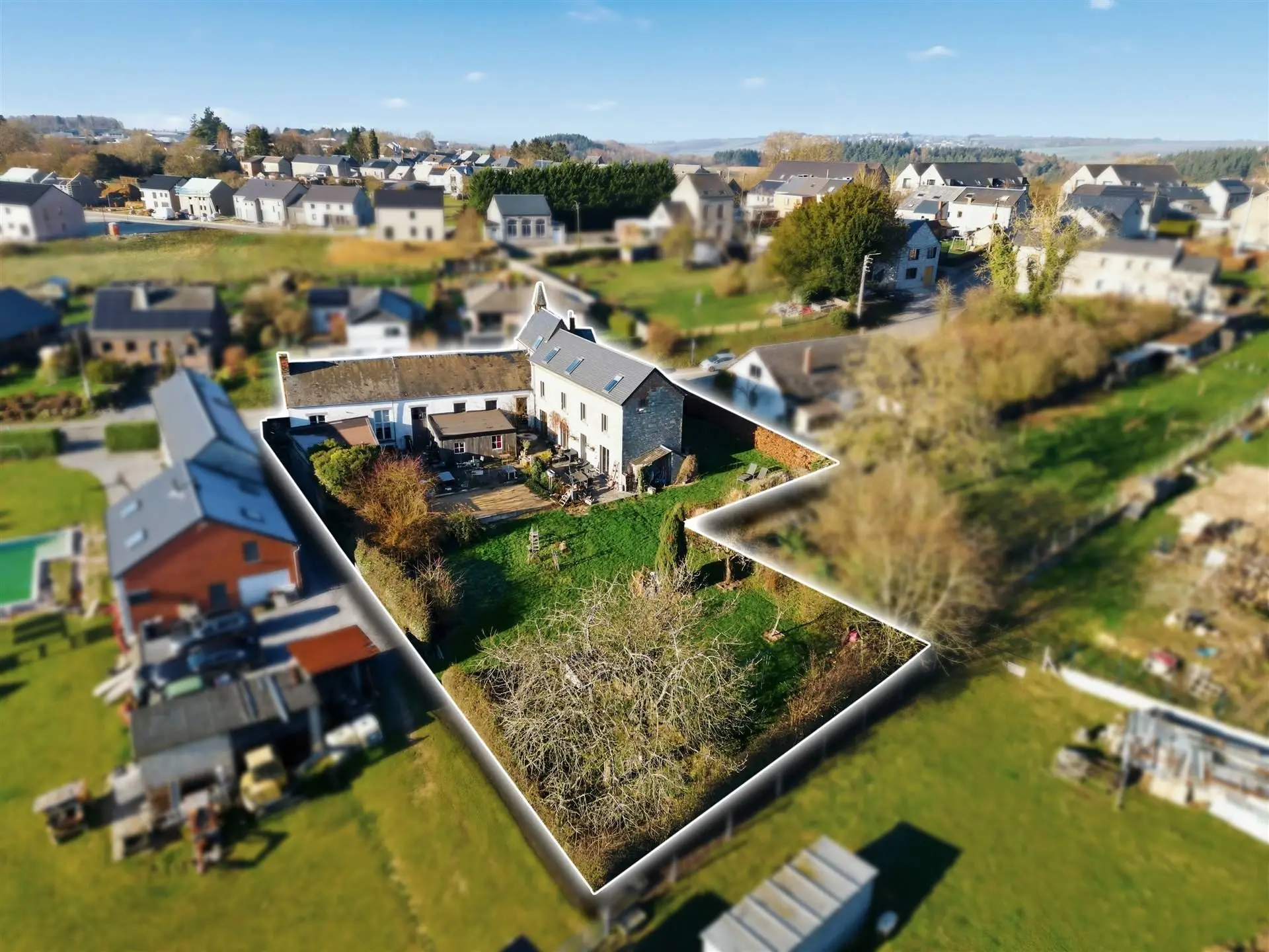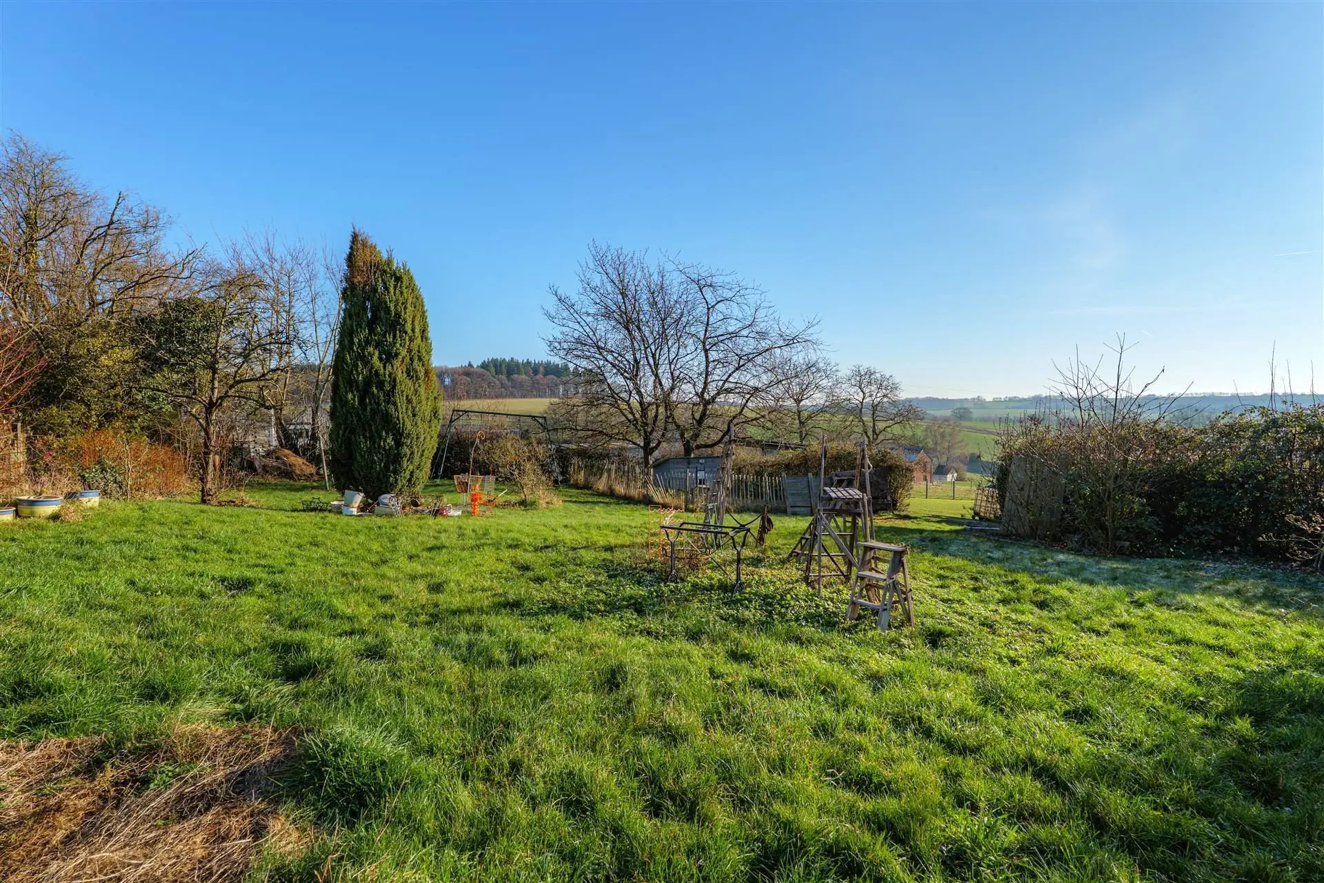 Implantée sur une parcelle de plus de 15 ares, la propriété bénéficie d’un cadre vert et paisible, sublimé par une superbe vue dégagée sur les campagnes dinantaises.