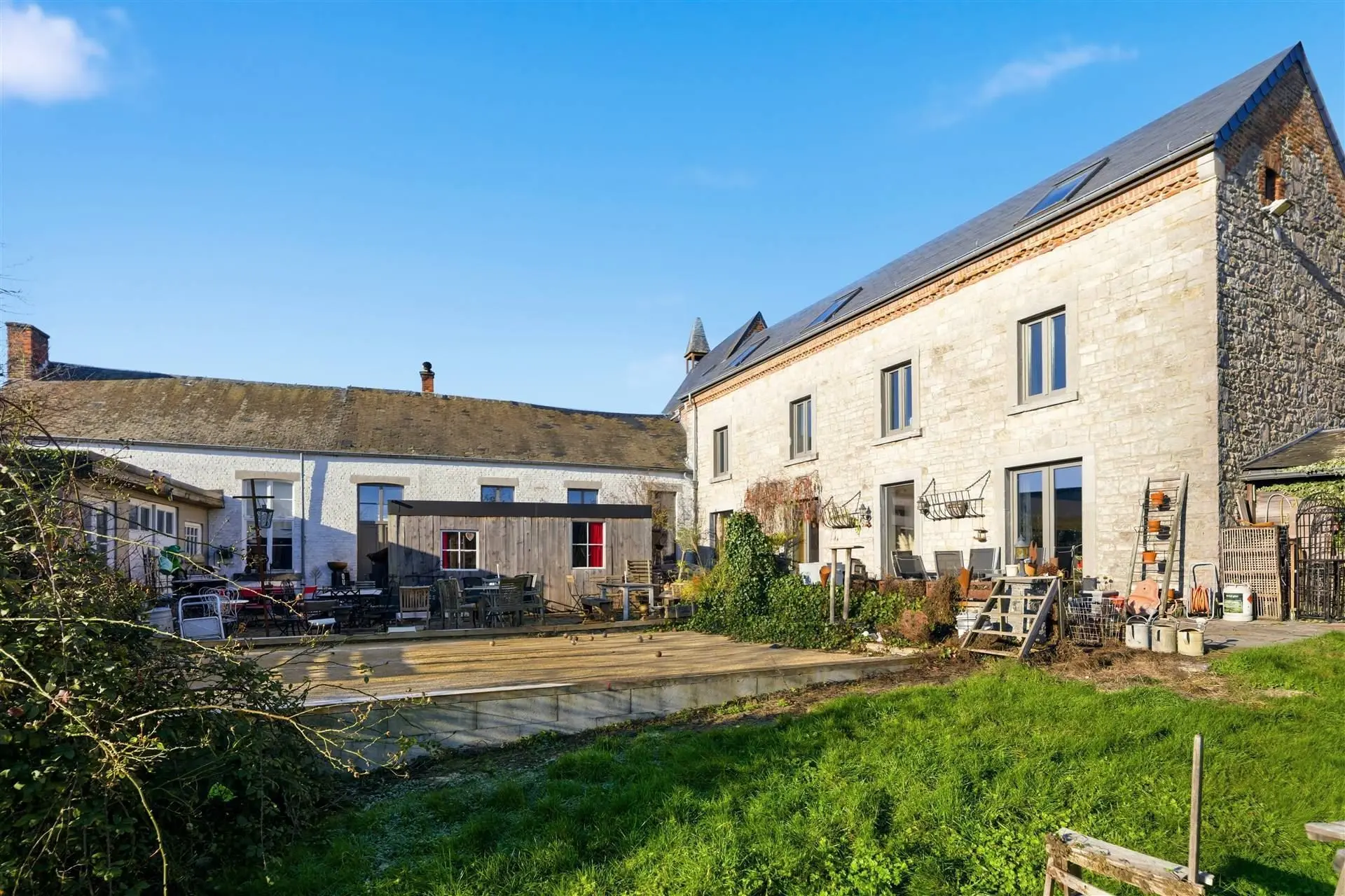 À SORINNES, à seulement 5 minutes de Dinant, dans un environnement verdoyant et paisible, découvrez un ensemble immobilier de caractère idéalement situé à quelques minutes de la E411 et des commerces, offrant un parfait équilibre entre accessibilité et tranquillité.